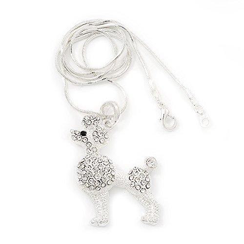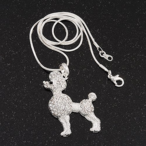 Avalaya Collana con ciondolo a barboncino in cristallo trasparente, in metallo placcato argento, 42 cm