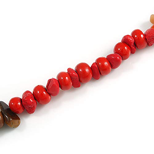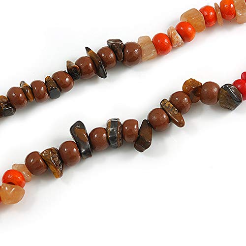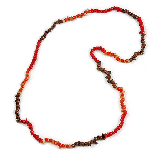 Avalaya - Collana lunga in legno e pietra semipreziosa, lunghezza 96 cm, colore: Rosso/Arancione/Marrone