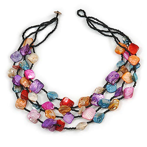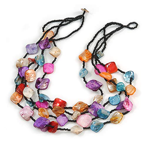 Avalaya Collana lunga multifilo con conchiglie di mare multicolore e perline di vetro nero, lunghezza 80 cm, Vetro Vetro conchiglia di mare