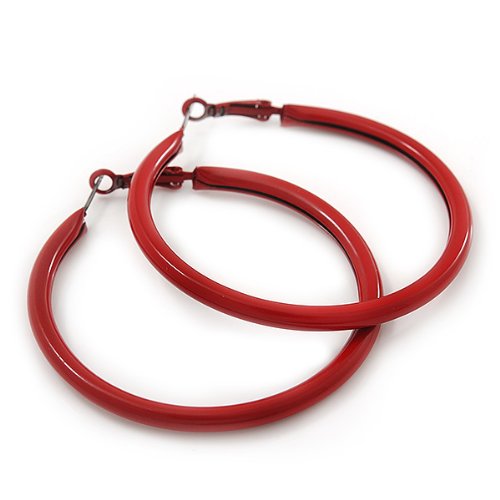 Avalaya Orecchini a cerchio smaltati rossi, 60 mm, Misura unica, smalto