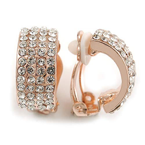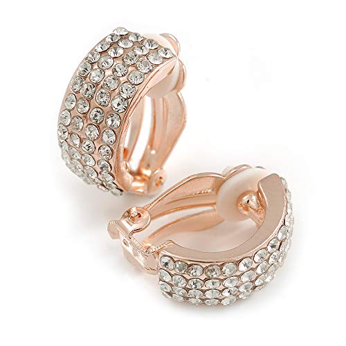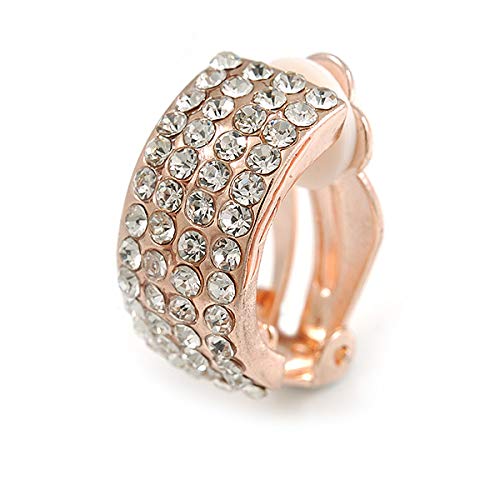 Avalaya Orecchini a clip in cristallo trasparente alto/C 20 mm/tono oro rosa