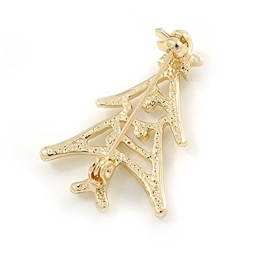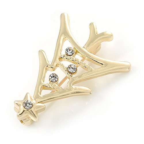 Avalaya - Spilla a forma di albero di Natale con agrifoglio, placcata in oro, lunghezza 30 mm