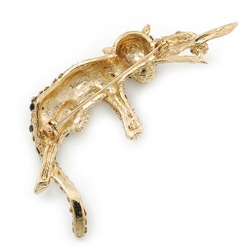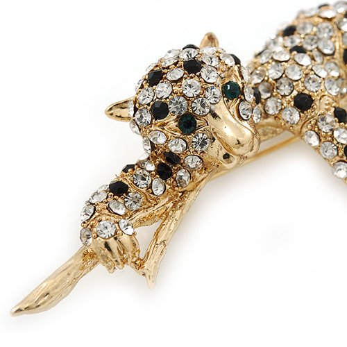 Avalaya Spilla leopardata nera e trasparente con diamanti placcati in oro, 75 mm di diametro, Misura unica, Pietre preziose, metallo, cristallo
