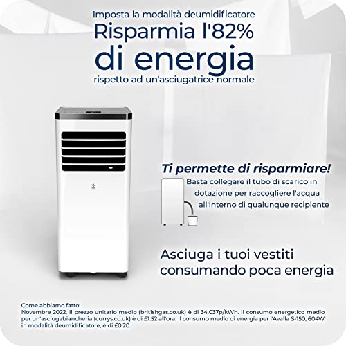 RISULTATO INDUSTRIALE EFFICIENTE - Il climatizzatore portatile senza tubo industriale da 2345 W leader di mercato con modalità deumidificatore ambiente da 22 litri è facilmente in grado di coprire un'ampia area di 80m³. Questo condizionatore senza unità esterna è ideale per asciugare i vestiti o trattare l'umidità, la muffa, la condensa e l'umidità in casa. L'S-150 è un investimento invernale ideale, che vi preparerà anche per i caldi mesi estivi.
