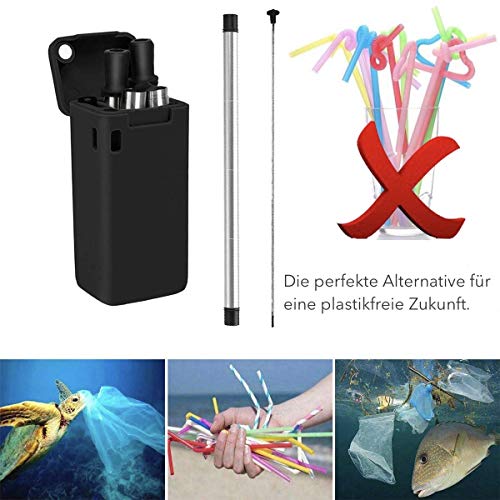Pratica scatola magnetica: portate la vostra cannuccia con voi ovunque con la scatola magnetica pieghevole. Offre abbastanza spazio per la cannuccia ripiegata e la spazzola di pulizia e la protegge dallo sporco esterno grazie alla chiusura magnetica.