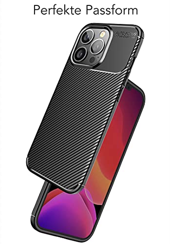 AVANA Custodia per iPhone 13 Pro Max Custodia flessibile Slim Case Nero Bumper Silicone TPU Antigraffio Fibra di Carbonio Cover