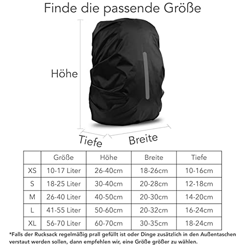 Avana - Protezione antipioggia per zaini con strisce riflettenti (18-55L), impermeabile, per zaini e zaini, Nero, L (41-55L)