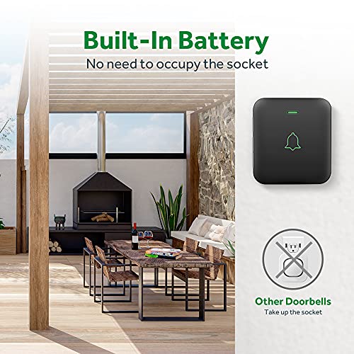 AVANTEK Campanello senza fili alimentato a batteria, mini campanello radio 300 m, IP55, impermeabile, 52 melodie su 5 livelli volumi con indicatore LED BA-11