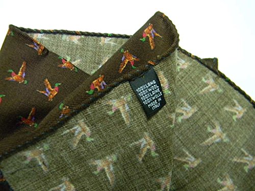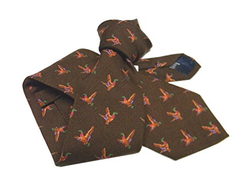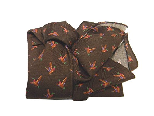 Avantgarde Cravatta lana uomo marrone fagiani motivi caccia colore marrone: completa a pochette