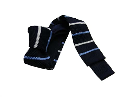 Avantgarde - CRAVATTA IN MAGLIA uomo BLU A RIGHE AZZURRE bianche cravatte tricot blu azzurro, colore: blu, 5