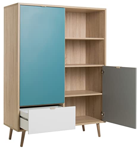 Materiale: legno laminato. Cerniere e guide metalliche. Piedi: legno massiccio. Corpo: quercia Sonoma. Maniglie: quercia Sonoma chiaro. Anteriore: bianco, grigio, verde. Consigli di trattamento: non usare detergenti di pulizia abrasivi. Facile da pulire grazie alle superfici lisce, è sufficiente un panno umido. Design scandinavo. Facile da abbinare ad altri mobili della stessa serie. Struttura moderna ed elegante.