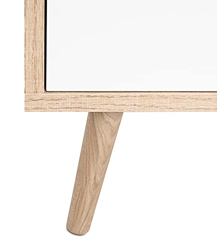Materiale: legno laminato. Cerniere e guide metalliche. Piedi: legno massiccio. Corpo: quercia Sonoma. Maniglie: quercia Sonoma chiaro. Anteriore: bianco, grigio, verde. Consigli di trattamento: non usare detergenti di pulizia abrasivi. Facile da pulire grazie alle superfici lisce, è sufficiente un panno umido. Design scandinavo. Facile da abbinare ad altri mobili della stessa serie. Struttura moderna ed elegante.