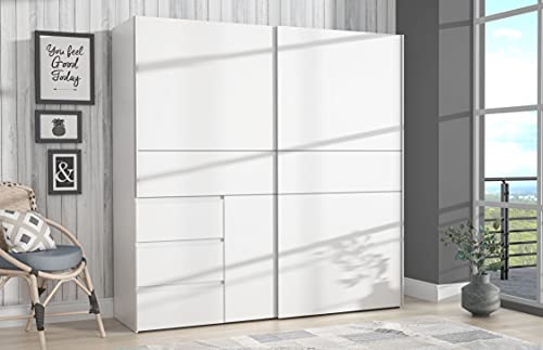 AVANTI TRENDSTORE - Fjolla - Armadio in legno laminato con ante scorrevoli, all'interno ripiani e appendiabiti. Disponibile due colorazioni. Dimensioni LAP 200,1x200,5x61,2 cm (bianco)