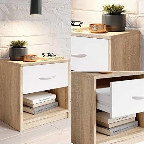 AVANTI TRENDSTORE - Pepe - Comodino con cassetto e scompartimento aperto, disponibile in diversi colori, dimensioni LAP: 39x41x28 cm (quercia sonoma-bianco)