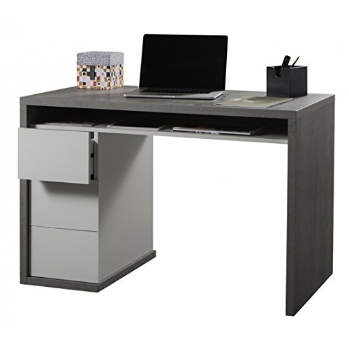 AVANTI TRENDSTORE - Privilegio - Scrivania in Laminato di Colore Cemento d'imitazione e Bianco Lucido, Dimensioni: Lap 110x75x60 cm