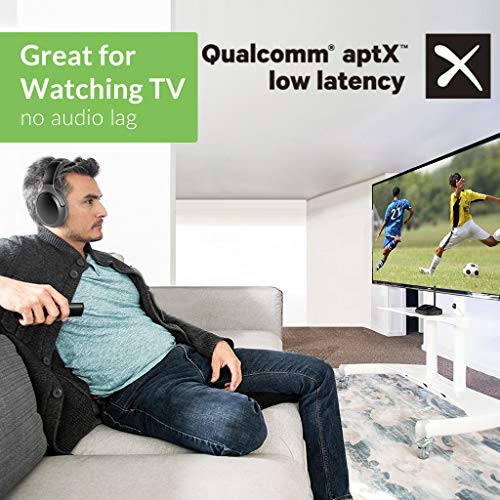 Avantree Aria Me Cuffie Bluetooth con Ottimizzazione Automatica del Duono, AptX HD, Bassa Latenza, Cancellazione del Rumore, Wireless con Microfono Regolabile e Supporto di Ricarica. Per Tel TV PC