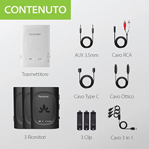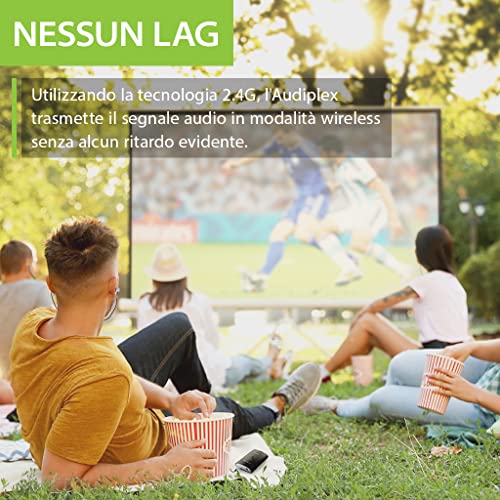 [Tutto in Sincronia, Nessun Ritardo Audio] Il kit wireless Audiplex utilizza la tecnologia a 2,4 Ghz (NON Bluetooth) per la trasmissione dell'audio;