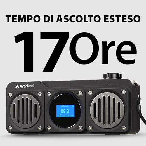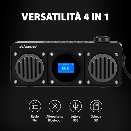 Avantree Boombyte - Radio FM Portatile 4 in 1 & Altoparlante Bluetooth con Doppio Driver (14W), Volume Potente, Suono Stereo, Lettore Micro SD e Porta USB, Lettore MP3 Ricaricabile