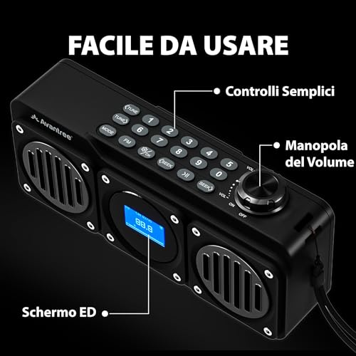 [RICEZIONE FM CHIARA] Goditi la ricezione FM migliorata che ti permette di ascoltare le tue stazioni radio FM preferite con una qualità del suono cristallina e senza interruzioni.
