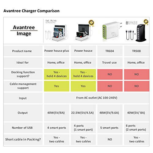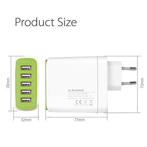 Avantree Caricabatterie USB da Muro Multiplo, 5 Porte, 48W, Portatile, Ricarica in Viaggio, per iPhone 7 6s 6 Plus, iPad 2, Samsung, telefoni Google, e Altri dispositivi Android
