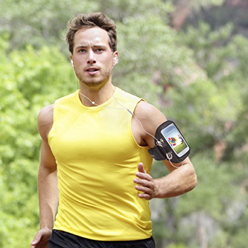 Avantree Trackpouch - Fascia sportiva multifunzione da braccio con portachiavi e porta carte per telefoni con schermo da 5.5", dimensione del braccio 13.4" - 18.1", Nero