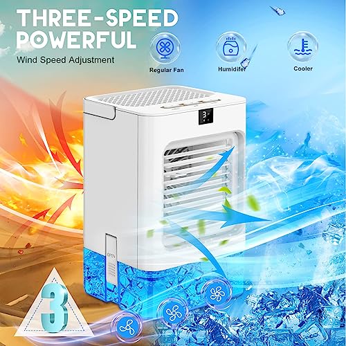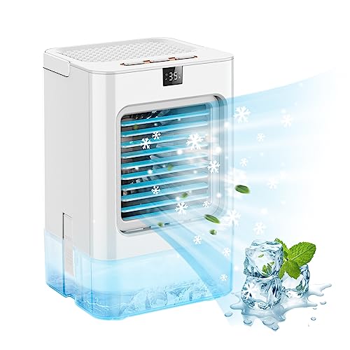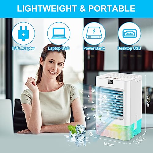 Avarmora Mini Condizionatore Portatile, Raffreddatore d'Aria con Serbatoio dell'Acqua da 700 Ml,3 velocità,LCD Display,Silenzioso USB Climatizzatore Portatile per Casa, Ufficio,Campeggio