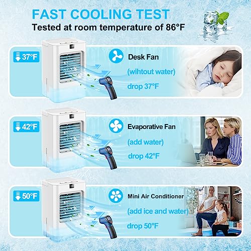 Climatizzatore Portatile con Luce Notturna a 7 Colori -- Il mini raffreddatore d'aria ha una luce notturna colorata, che può creare un'atmosfera romantica se utilizzato di notte. Le dimensioni compatte del mini evaporativo ventilatore sono più adatte per il raffreddamento personale ed è anche facile da spostare dove serve, come: scrivania, comodino, tavolo da pranzo, ufficio, ecc.
