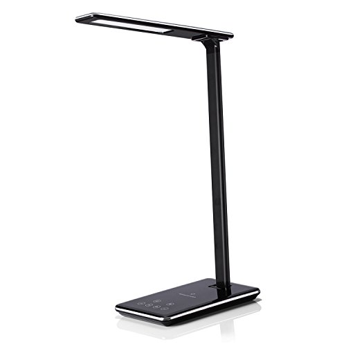 AVAWAY Lampada da Tavolo LED con Caricatore Wireless Qi, lampada da Scrivania Dimmerabile con Porta USB, 4 Temperature di Colore, Controllo Memoria Sensibilità Tattile - Nero