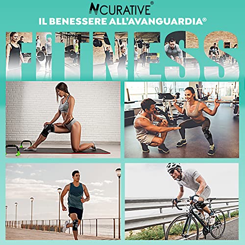 AVCURATIVE - Tutore ginocchio legamenti fascia per sport riabilitazione con stabilizzatori laterali traspirante confortevole ginocchiera ortopedica con nastro kynesiologico ed E-book INCLUSI (M)
