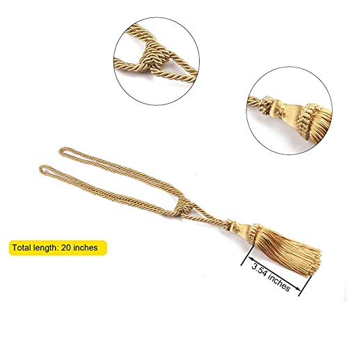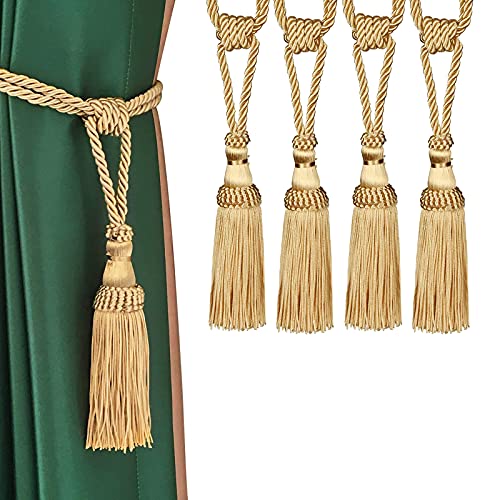 BEL AVENIR - Fermacravatte per tende intrecciate a mano, con nappe, per decorazione casa, ufficio, confezione da 4 (dorato)