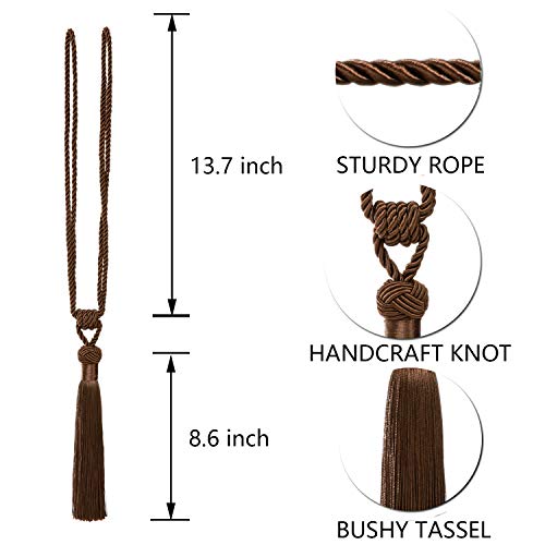 Bel Avenir, Fermatende in corda intrecciata a mano, con nappe decorative, per la casa, colore: caffè scuro, set da 4