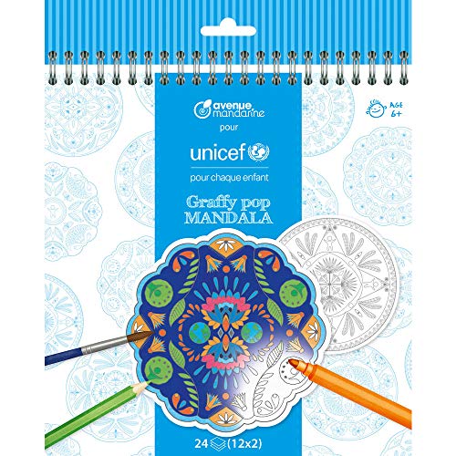 Un diario Graffy Pop Mandala Unicef composto da 24 mandala pretagliati diametro 18 cm (12 disegni x 2).