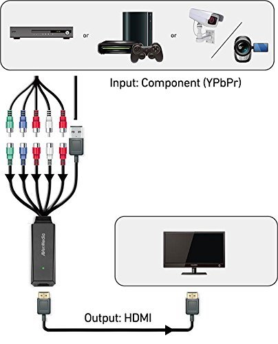 AVerMedia Component (YPbPr) to HDMI Output 1080P HD Video Converter for TV/PC/PS3/Wii/Xbox/Blue-Ray DVD (ET113)