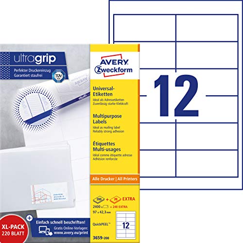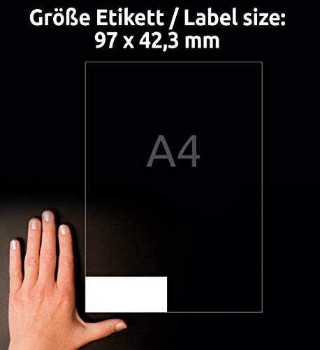 Più Contenuto: 5 fogli EXTRA · Garantito senza sbavature per tutte le stampanti comuni, nessuna sfocatura · TÜV SÜD conferma il funzionamento senza problemi della stampante laser · Incollaggio affidabile su carta, cartone, vetro e plastica · Modelli e software gratuiti per la stampa delle etichette