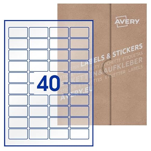 AVERY Etichette adesive in Poliestere Trasparente, rettangolari Formato 46x25mm, 50 Fogli, 40 Etichette per Foglio, Formato Foglio A4, Adesivo Permanente, per stampanti Laser