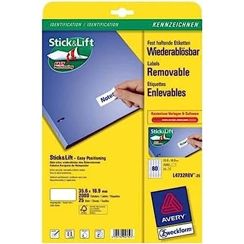 Multi usi enlevables Avery étiquettes, 35,6 x 16,9 mm