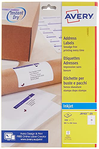 Avery J8163-25 Etichette Quickdry per Indirizzi, Bianco