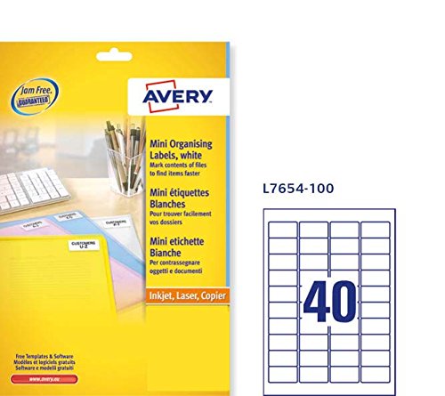 Avery L7654-100 Mini Etichette 40 Etichette per Foglio, 100 Fogli, 45.7 x 25.4, Bianco