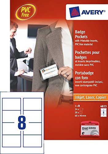Avery, Kit 25 portabadge con foro + 32 Badge stampabili
