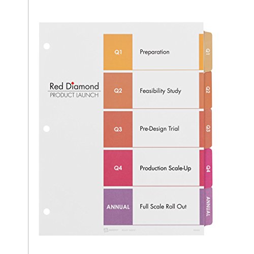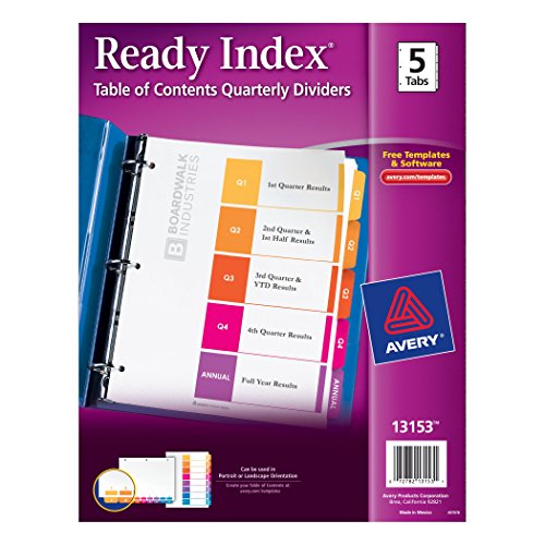 Avery Ready Index Table of Contents Quarterly Dividers, 5-tabs per set, Quarter 1 - 4 e annuale (13153)
