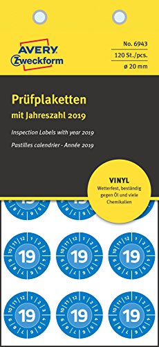 Avery Zweckform 6943 prova plaketten (120 Etichette con data 2019, diametro 20 mm) 8 arco, Blu