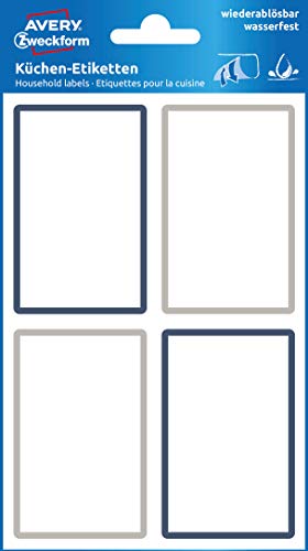 AVERY Zweckform Etichette da cucina autoadesive, 16 adesivi (etichette per la casa 47,5 x 73 mm, rimovibili e impermeabili, scrivibili per fai da te) 63021