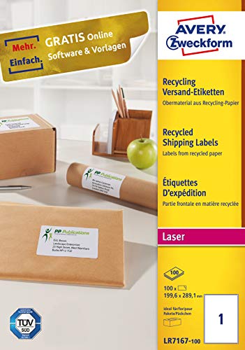 AVERY Zweckform LR7167-100 - Etichette in carta riciclata, 199,6 x 289,1 mm, 100 fogli, autoadesive, stampabili, carta opaca, 100% carta riciclata, motivo: angeli blu, bianco naturale