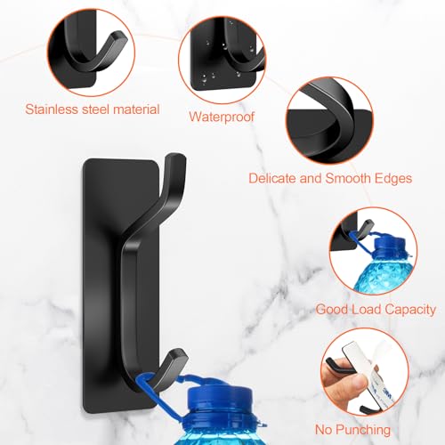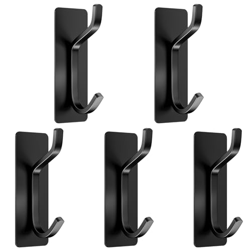 Avesteir 5 Pezzi Ganci Adesivi 3M Inossidabile, Gancio Adesivo a Parete Nero Senza Forare, Appendiabiti da Bagno Autoadesivi Impermeabili Antiruggine, Appendi Gancio Ideale per Cucine Bagni Uffici