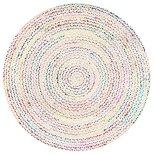 Avgari Creation AVG Tappeto rotondo in cotone bianco fatto a mano Tappeto intrecciato a mano per camera da letto, cucina, soggiorno, fattoria artistica per soggiorno (360 x 360 cm)