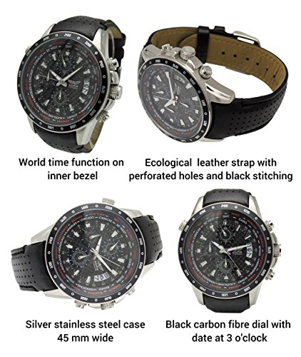 Aviator Orologio da uomo piloti Orologio Cronografo Orologio mondiale avw7770g78 NERO IN PELLE