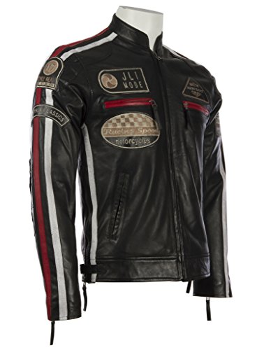 Aviatrix Giacca da Moto da Uomo in Vera Pelle con Colletto Banda e Stemmi Racing (CXUS)