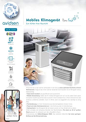AVIDSEN HOME, climatizzatore portatile per interni ed esterni, con tubo di scarico, guarnizione per finestre, app gratuita per smartphone, senza abbonamento, silenzioso, 9000 btu, design compatto