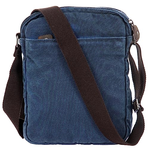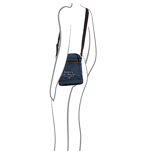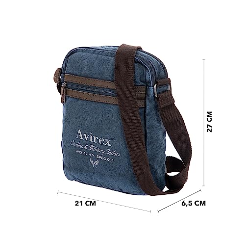 Avirex Borsello a Tracolla in Canvas e Pelle Bovina Anticata, Borsa a Tracolla Uomo in Stile Militare, Collezione 140506 CNV0H, Blue Navy