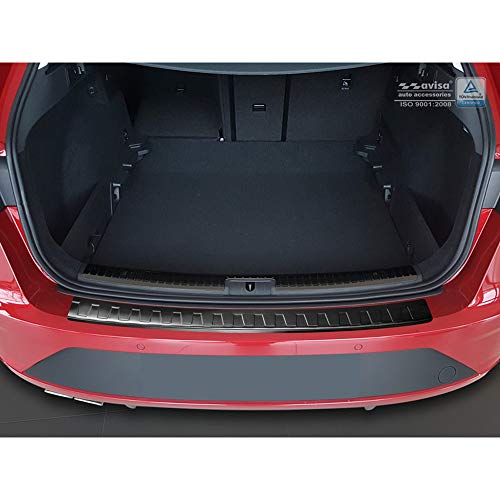 Avisa Protezione paraurti Posteriore in Acciaio Inox Nero Compatibile con Seat Leon (5F) ST 2013-2017 & 2017- 'Ribs'